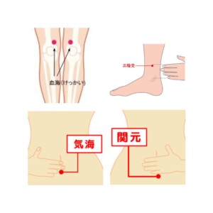 - 三陰交(さんいんこう):女性ホルモンバランスを整える