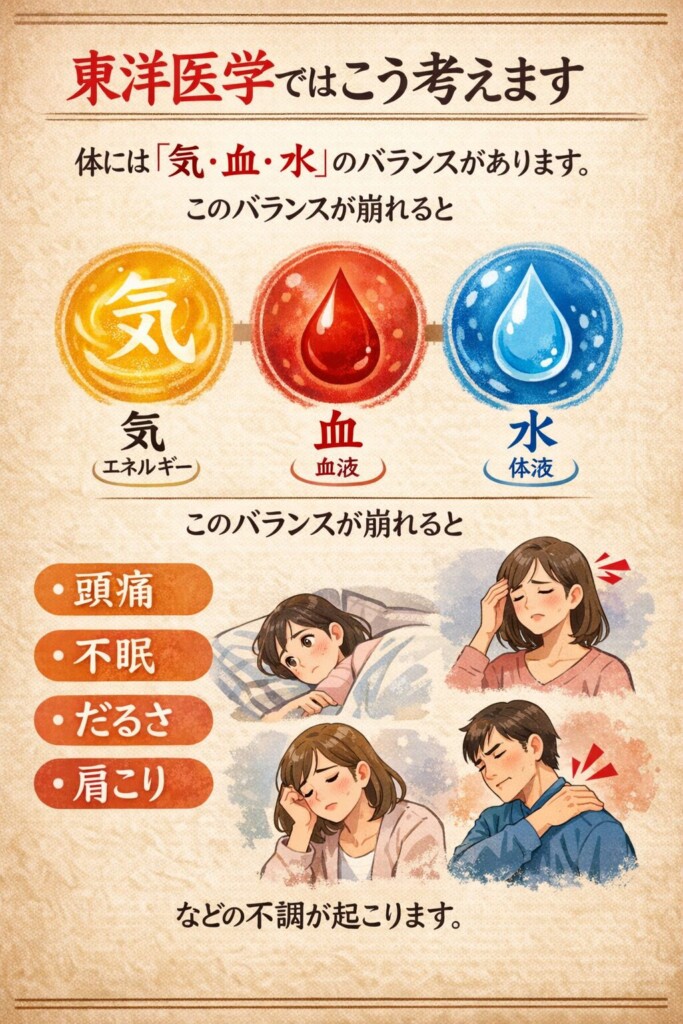 体には「気・血・水(き・けつ・すい)」という